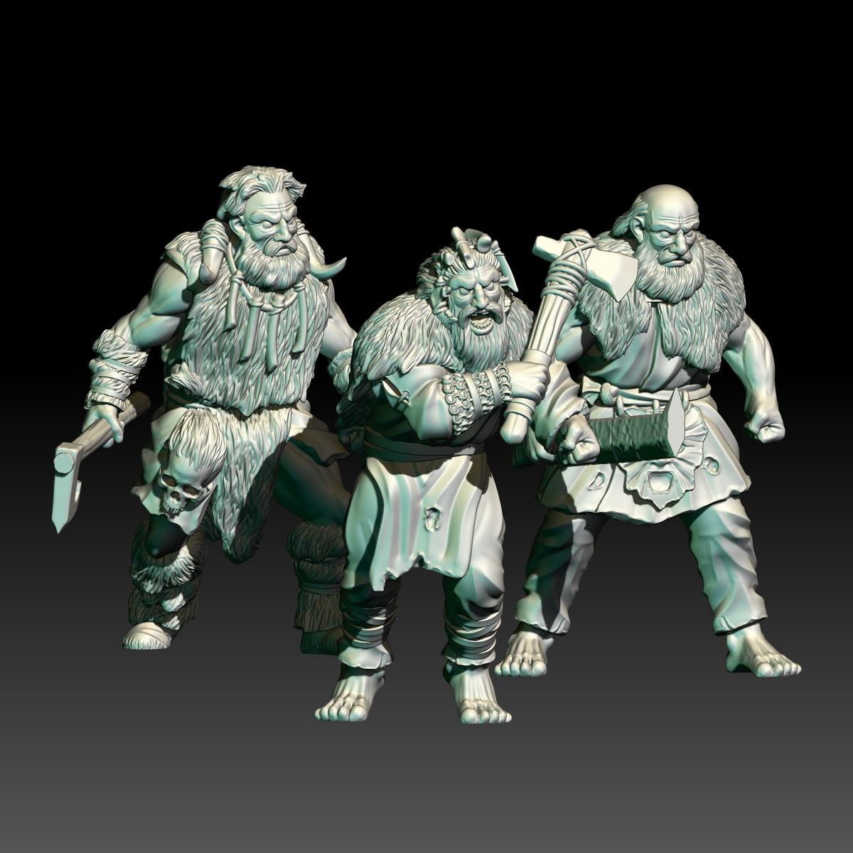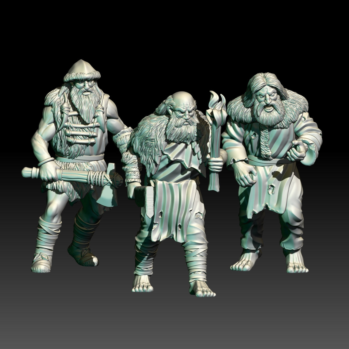 This kit includes 10 wildmen and axes for the ones without weapons. Printed in 28mm scale.
