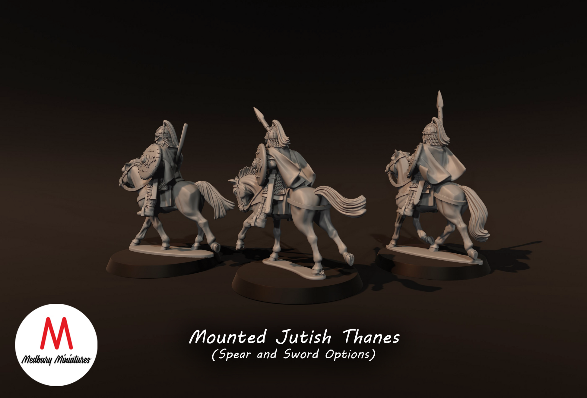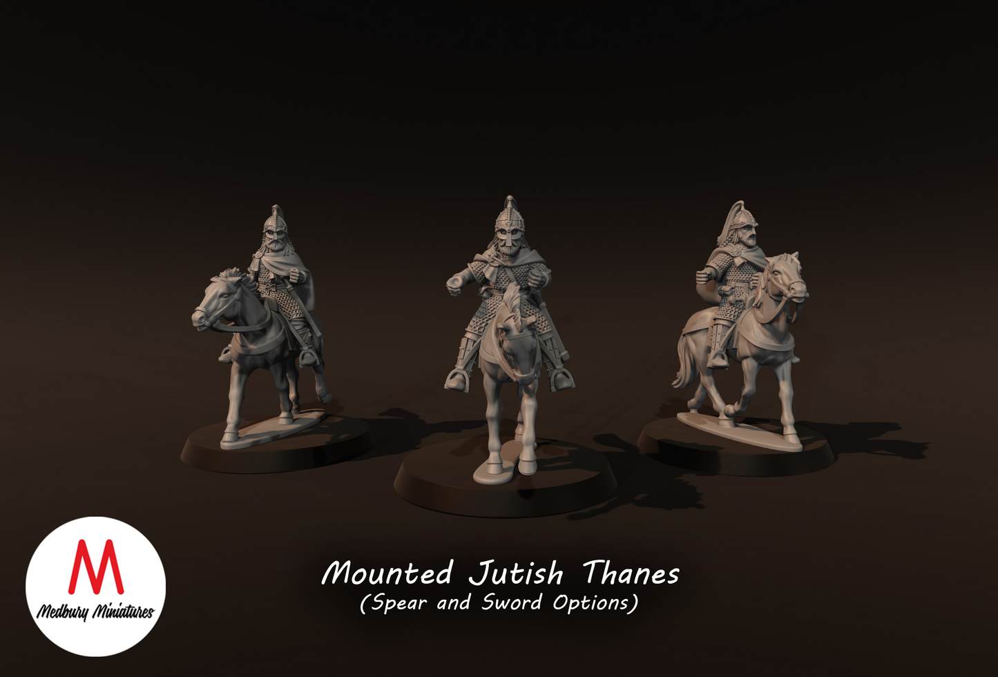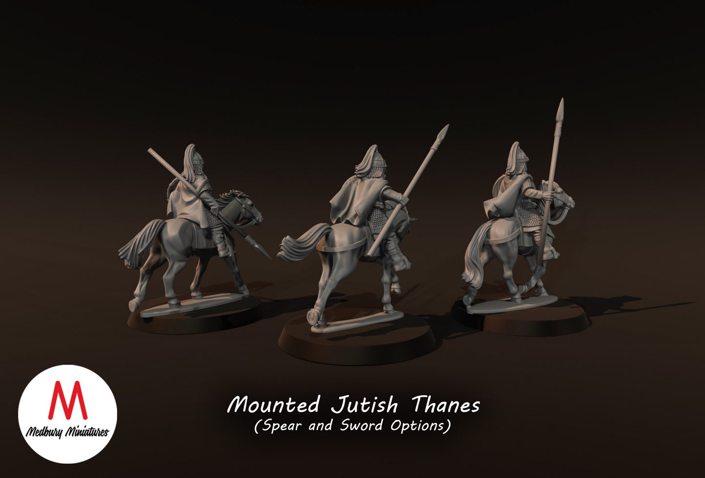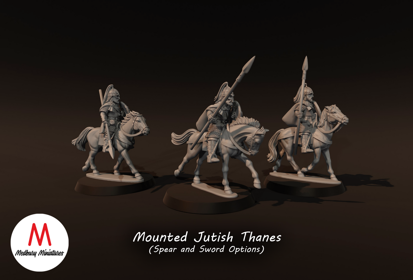 3x Jutish Thanes with Spears on Horse - Medbury Miniatures