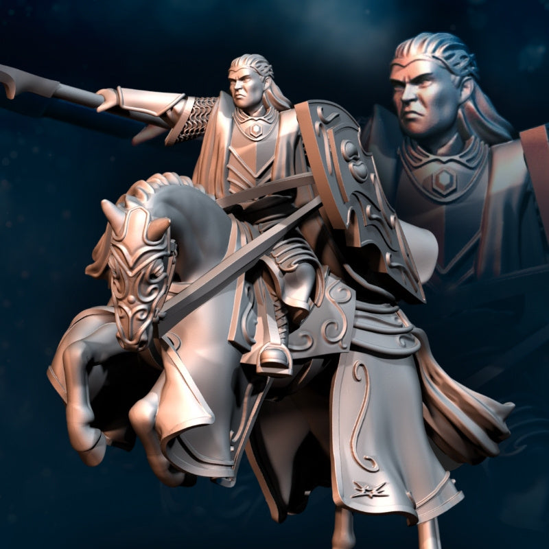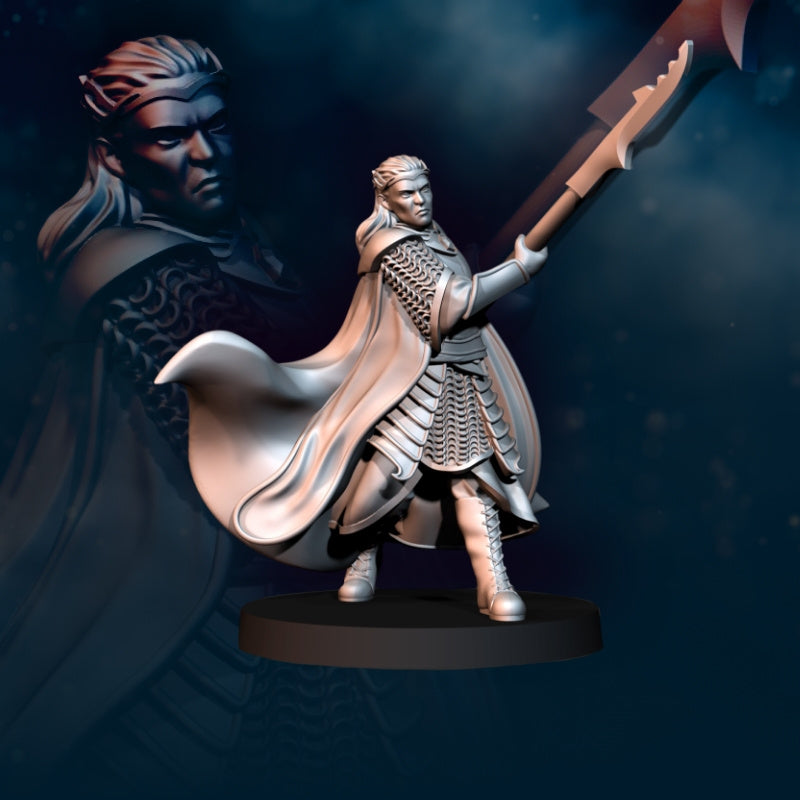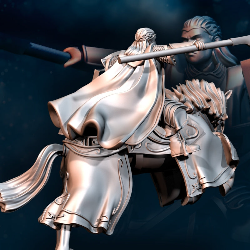 This kit includes the high king of the Bloody Elves on foot and mounted. Printed in 28mm scale.