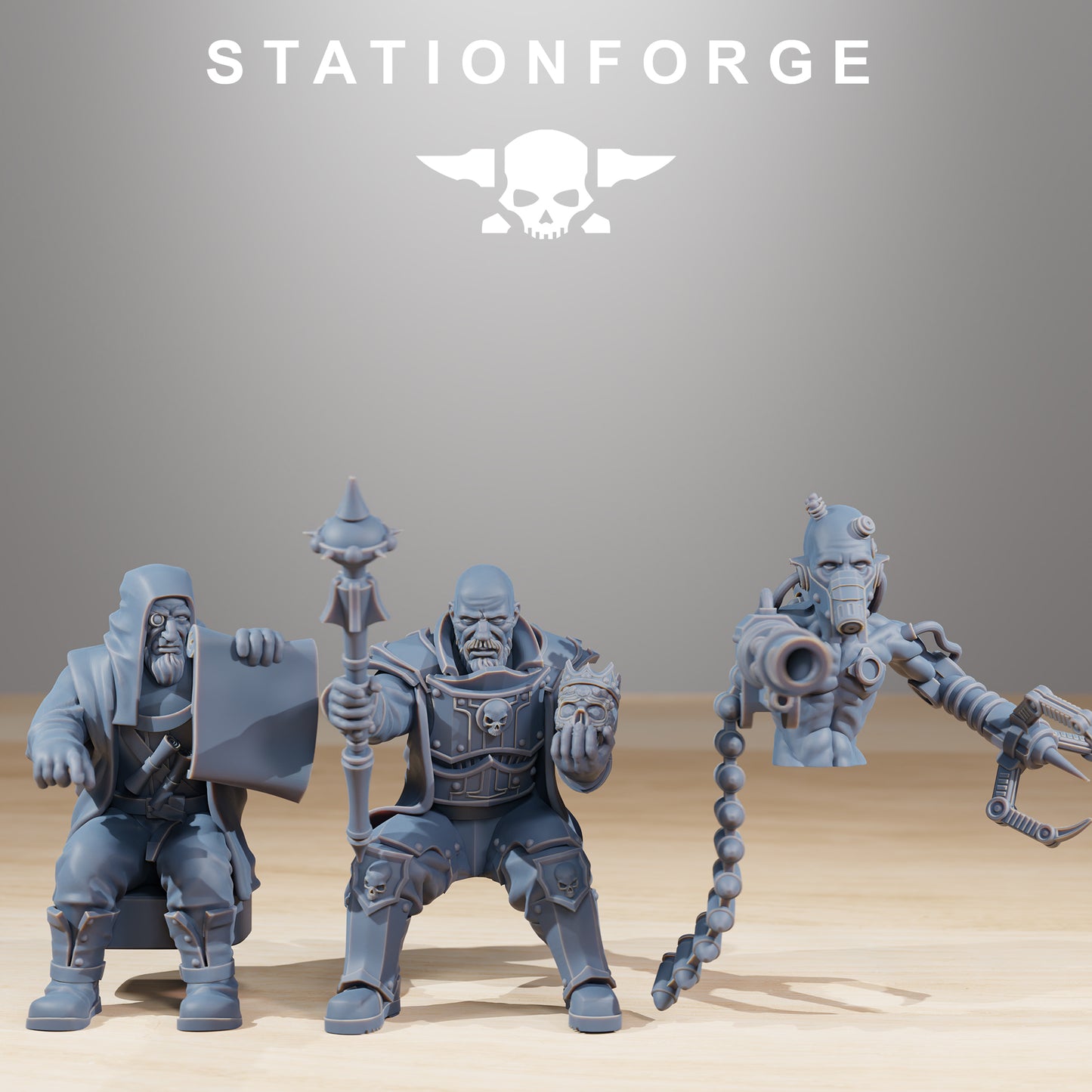 This kit includes everything pictured in the first image. Printed in 32mm scale. Miniature design by Station Forge. Produced by HammerLine Miniatures. All Hammerline Miniatures products are 3D printed using high-quality resin and are washed, cured and have the majority of supports removed. Some clean up and assembly may be required. Models provided unpainted. Bases supplied.