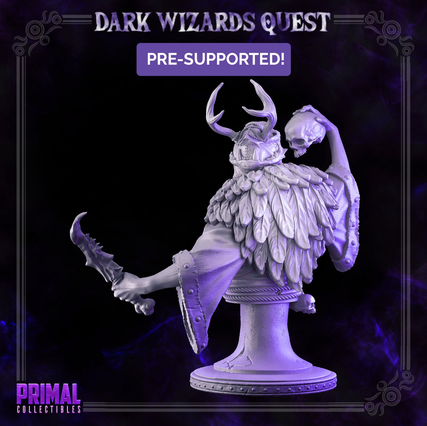 This kit includes everything pictured in the first image. Primal Collectibles busts are approximately 100mm tall on average, but if you would like them in a specific size please get in touch! Miniature design by Primal Collectibles. Produced by HammerLine Miniatures. All Hammerline Miniatures products are 3D printed using high-quality resin and are washed, cured and have the majority of supports removed. Some clean up and assembly may be required. Models provided unpainted.