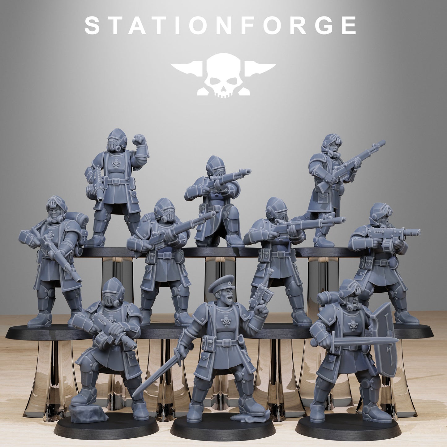 This kit includes everything pictured in the first image. Printed in 32mm scale. Miniature design by Station Forge. Produced by HammerLine Miniatures. All Hammerline Miniatures products are 3D printed using high-quality resin and are washed, cured and have the majority of supports removed. Some clean up and assembly may be required. Models provided unpainted. Bases supplied.